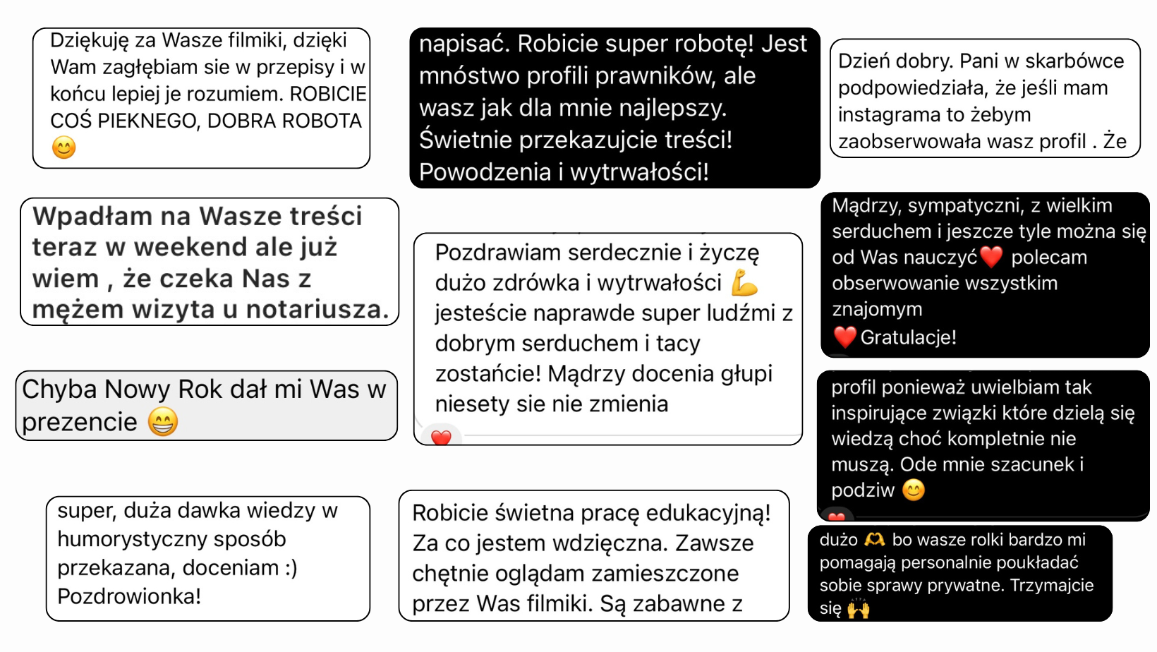 Adwokat Katarzyna Bielecka i Radca Prawny Dariusz Mrozek - po godzinach edukujemy i uświadamiamy prawnie MILIONY POLAKÓW na profilu Prawnicza.Para w mediach społecznościowych, gdzie łącznie śledzi nas ponad 350 tysięcy osób!